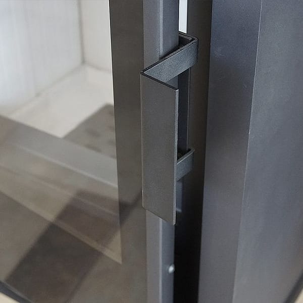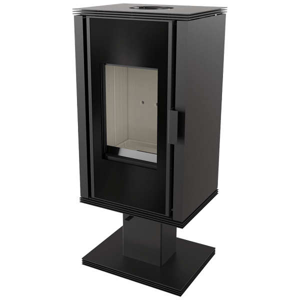 A modern device that meets the strictest ecological standards. The stove is set on a leg and equipped with a rotary function that allows to set the combustion chamber in any direction. It has a hidden air inlet.