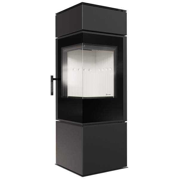 The spacious glazing makes the vision of fire more attractive, and the extra decorative glass highlight its charm. The interior of the stove is lined with TERMOTEC which perfectly contrasts with the stove, giving it a modern look. TERMOTEC is a ceramic material which accumulates heat and raises the temperature in the furnace.