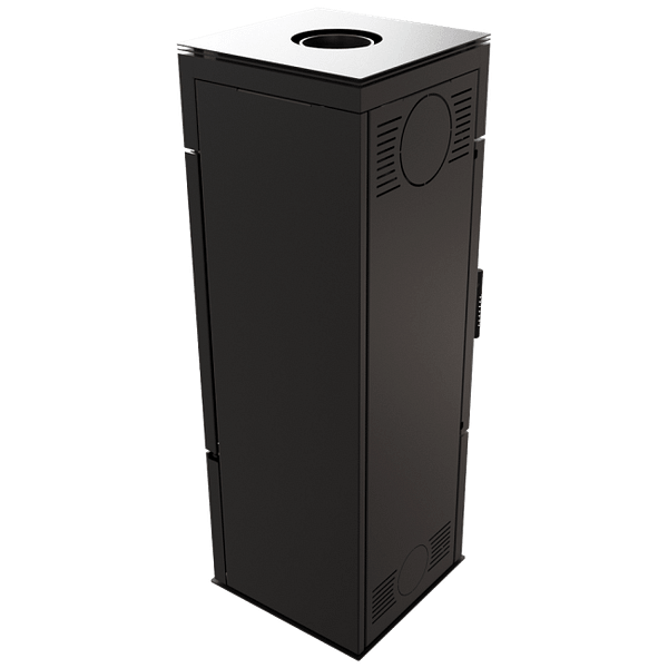 Due to its shape, the freestanding stove THOR can be installed in the corner of the room with either top or rear connections. Rear connection is possible both on the right and left side of the stove. Thanks to the self assembly it is possible to independently rearrange the side panels of the stove and the exhaust outlet, moreover, there are no difficulties with the proper connection of the appliance to the chimney, regardless of its location on the wall. The fitting of the outlet and side panels to the appropriate side is determined by the installer who adjusts the appliance to the needs of the assembly.