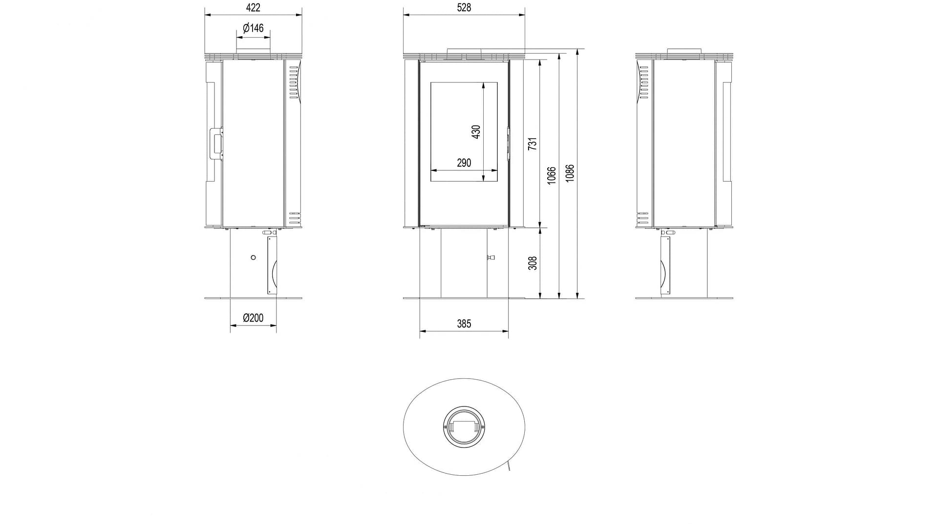 Wood burning steel tiled pedestal stove AB Ø 150 8 kW